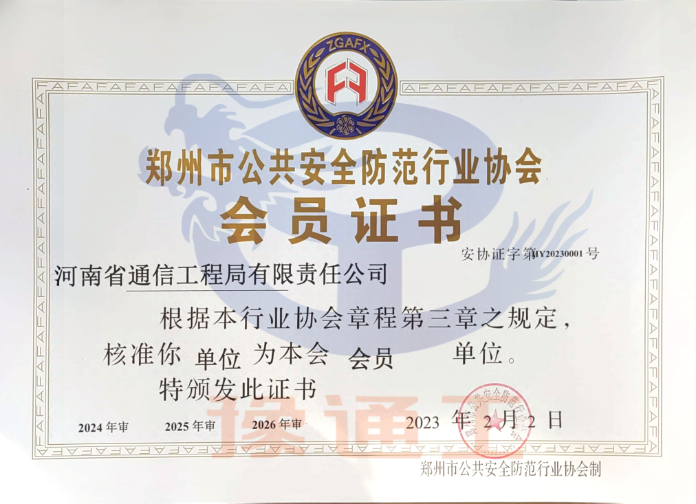 鄭州市安防協(xié)會會員證書
