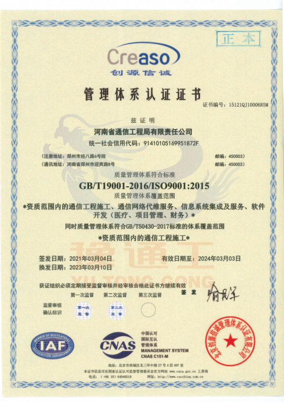 管理體系認證證書(質(zhì)量管理)
